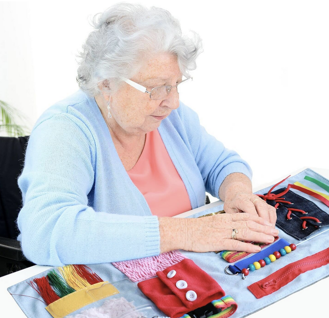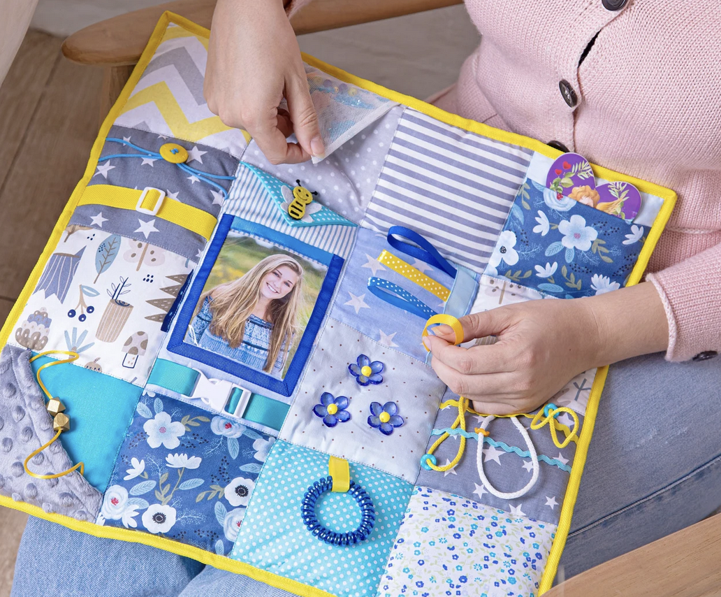 Fidget Mat or Fidget Quilts are quickly becoming a highly sought after donation item. Even lap quilts are starting to incorporate different textures and ‘feels’ in their construction. The purpose of these quilts is to keep residents’ hands busy and their minds active and calm through sensory stimulation.